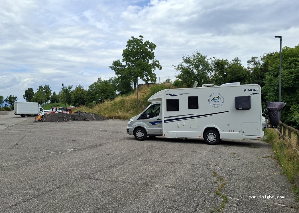Bel parcheggio vicino al campo sportivo. C'è un rubinetto dell'acqua in loco. Questo posto è meno affollato del campeggio in centro. Molto tranquillo di notte.