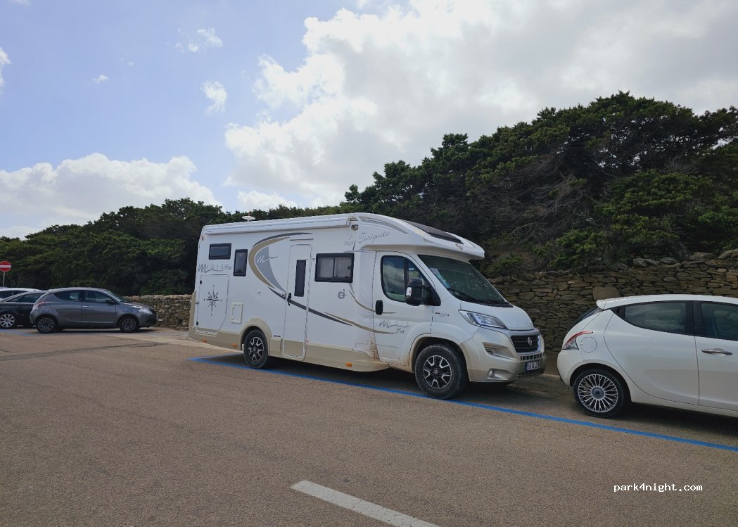 Ottimo parcheggio con vista super! Fuori stagione era tranquillo e abbiamo passato una notte senza alcun problema (la notte di capodanno) insieme ad altri mezzi. Accesso diretto alla spiaggia La Pelosa.