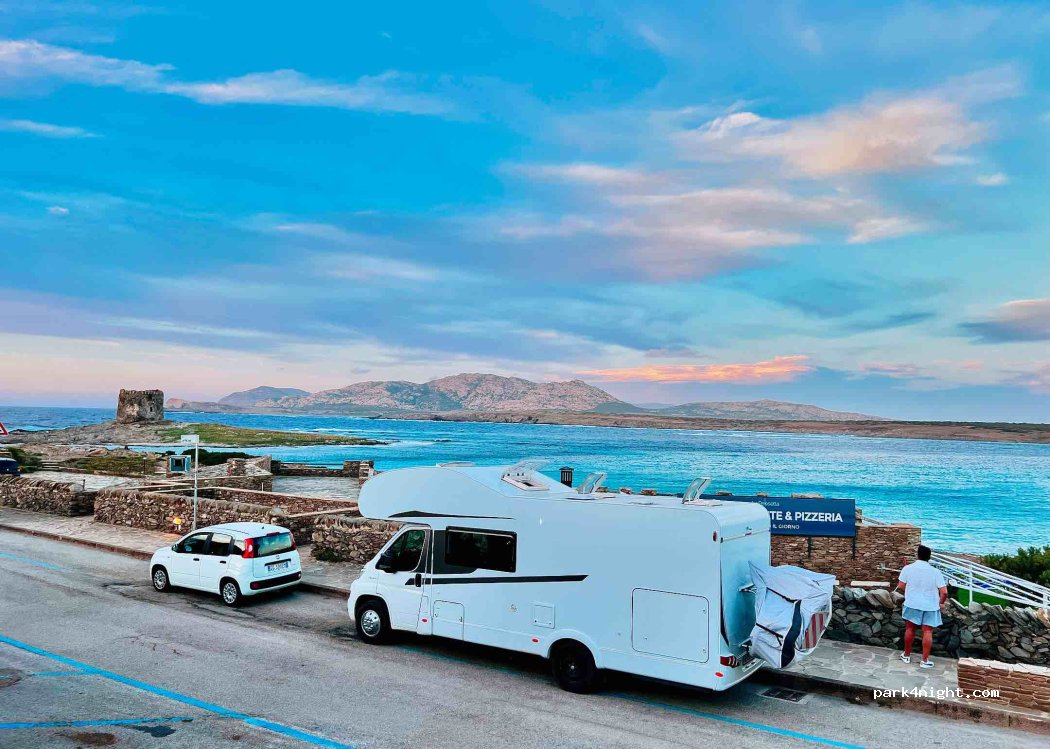Beautiful place, La Pelosa is magnificent. we have been here during the last days of May but from 1.06 to 30.09 it's not permitted to stay, not even to park by day (for campers and vans) Anyway it was really crowded also in May, people and rv everywhere. We stayed for one night and didn't pay anything.