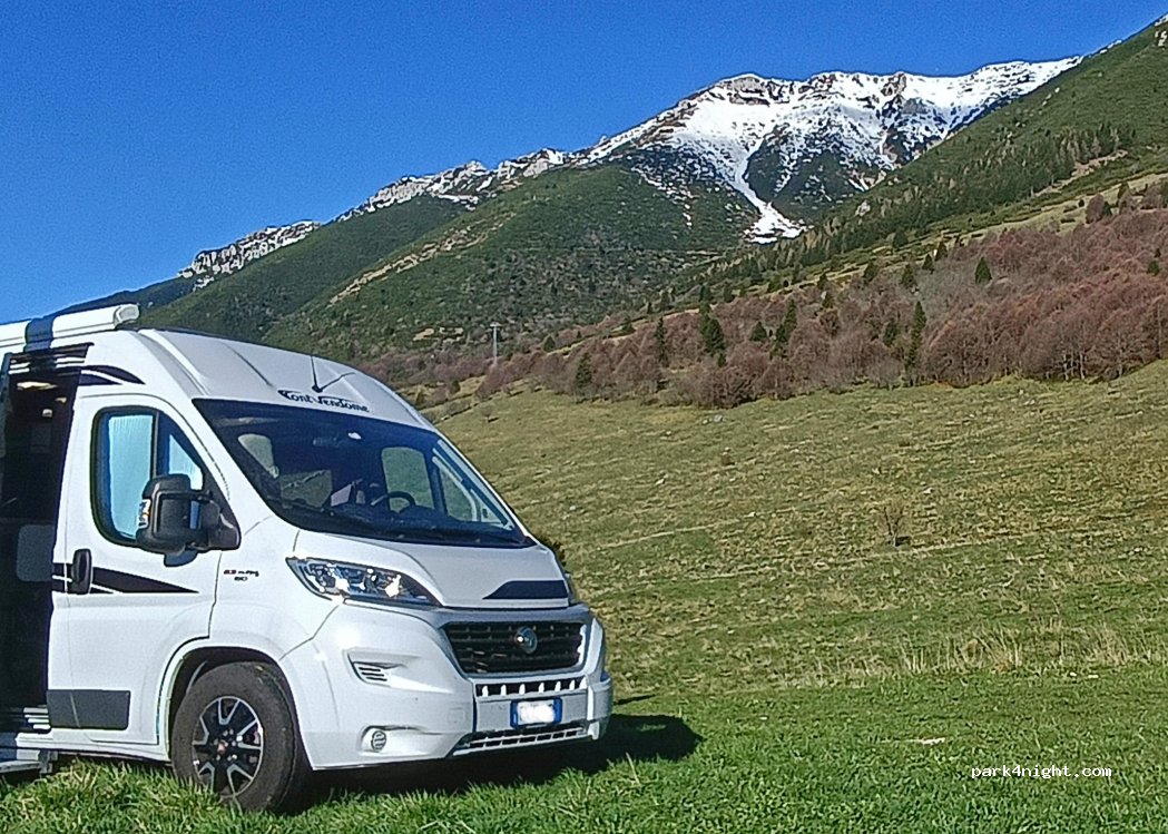 Bellissimo posto. Ad agosto era pieno di camper. La strada per arrivarci è comoda ma tutta in salita. Vista mozzafiato! È un grande prato a bordo strada ma ti puoi allontanare verso la pineta perché lo spazio c'è. Ci sono bracieri a terra. Mi raccomando porta con te i tuoi rifiuti. No bidoni di Immondizia. Possibilità di diverse escursioni su per il monte. La notte è stata tranquilla e fresca.