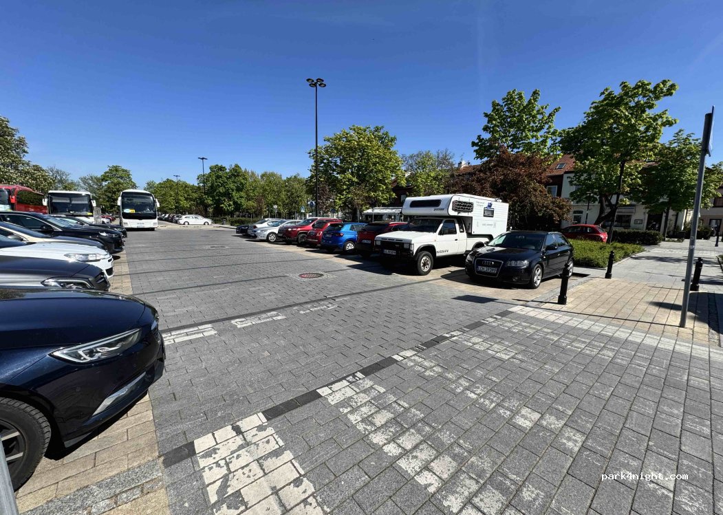 Хорошее место - тихо, спокойно, стоянка освещенная, но не слишком, но спать не мешает. Рядом симпатичный ресторан, можно посетить перед сном. Рядом красивые здания, замок. Есть хороший биотуалет что важно! :)
