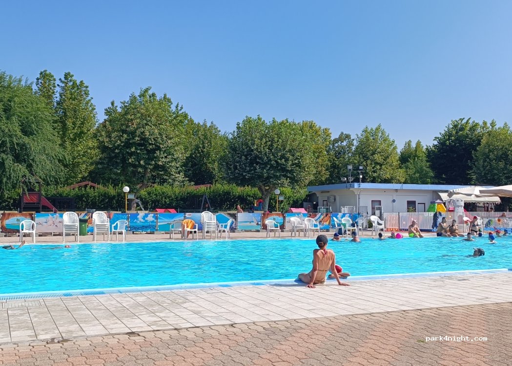 Grossteils schattiger Platz mit etwas älteren, sauberen Sanitäranlagen. Unser Stellplatz hatte Strom aber keinen Wasserabschluss. Ver- und Entsorgung am Parkplatz vor der Schranke möglich. Schöner Pool mit Badekappenpflicht (Mittagspause 12:30 - 15:00 Uhr). Shop und Pizzeria Ristorante am Platz. Supermarkt direkt nebenan. Strand ist wenige Minuten mit dem Fahrrad entfernt. 75€ für Ministellplatz.