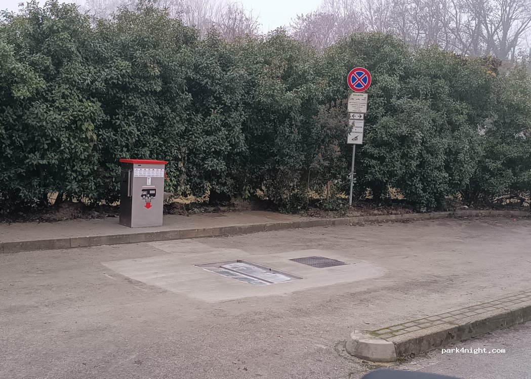 Como parquing ideal. Grande, con sombra, muchos sitios. Tranquilo de noche, por la mañana llegan coches a aparcar pero no es molestia por ser grande. Cerca de un parque y paseos a Forli. NO HAY POSIBILIDAD DE CARGA Y DESCARGA. ESTÁ CERRADO. Solo parquing sin prohibición de pernoctar