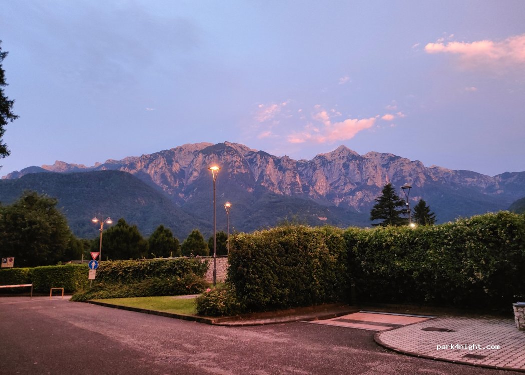 The municipal territory of Borgo Valsugana, Cailleboti concrete/grass background, illuminated, clean, quiet and comfortable, near the Center of Borgo Valsugana and along the Brenta river. Little shade, automatic payment. Services for campers, the water is stopped in winter, illuminated at night. Close to shops, hospital and train station and bus station. Near the Valsugana cycle path and a large children's playground. 30 minutes from Val di Sella. Nearby: World War Museum. Close to the Bassano-Trento cycle path. 5 minutes walk from the center.