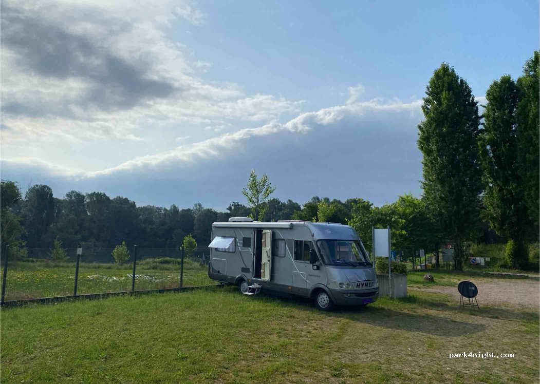 A small, quiet spot in Parco dei Tre Laghi. Parking for six vehicles is available, with electricity.