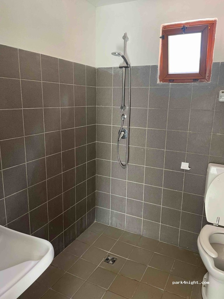 Een prima plek voor € 5,00 per 24 uur! We geven 4 sterren, omdat het toilet niet perfect was. Het was redelijk schoon maar kon zeker beter. Er is ook een wastafel en een douche. Er staat een stroomkast met 6 aansluitingen in het midden van de 6 plaatsen. Bij de ingang is een slagboom. Je moet eerst betalen en dan gaat de slagboom open. Let op: je kan niet met de bankpas betalen, dat werkte niet. Zorg dus voor muntgeld! Er is een speeltuintje met picknick tafels en bbq’s aan de ene kant en aan de andere kant een trap naar beneden naar de rivier.