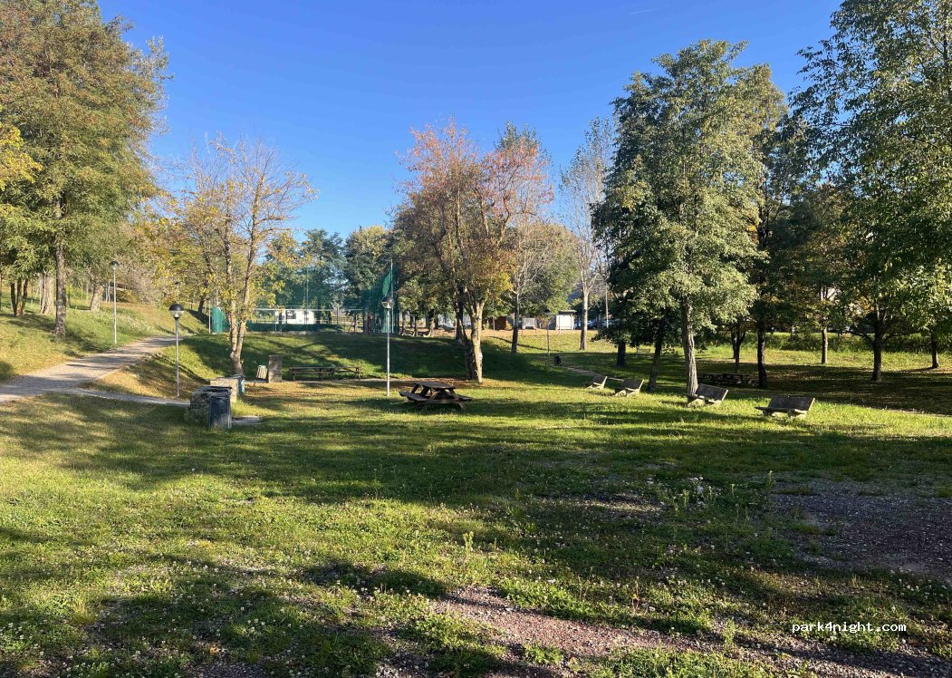 Posto tranquillo e molto comodo. Sosta 6€ al giorno se si usa la corrente. Possibilità di carico e scarico. Postazione vicino al centro e vicino al parco. Postazione griglia riservata. Nel parco area gioco, pick-nick e griglie a carbonella.