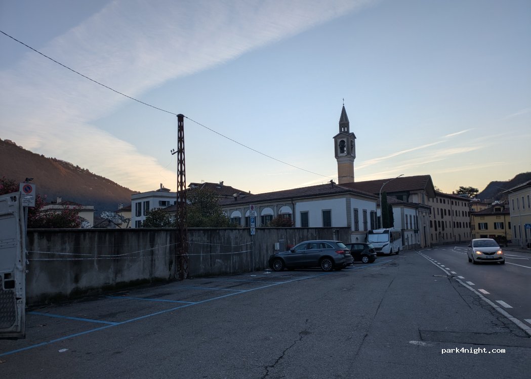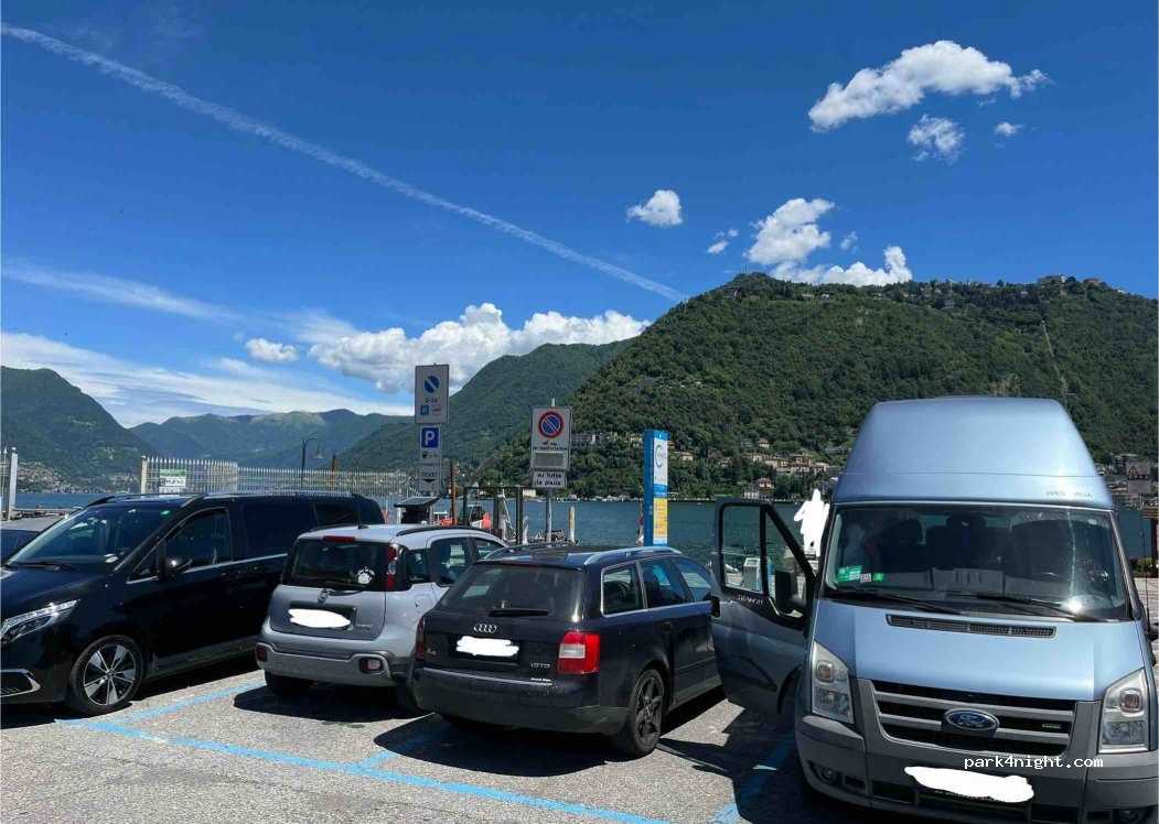 8-19h gebührenpflichtig, danach frei. Erstaunlich ruhig für eine Stadt. Standen hier mit 3 Anderen ohne Probleme. Keine Verbotsschilder für Womos, nur blaue Markierungen am Boden. Guter Ort auch für einen Besuch tagsüber in Como