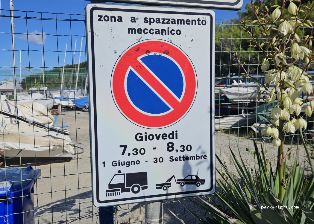 Il parcheggio è vietato solo al mattino dal 1° giugno al 30 settembre, dalle 07:30 alle 08:30, dopodiché è consentito 24 ore su 24.