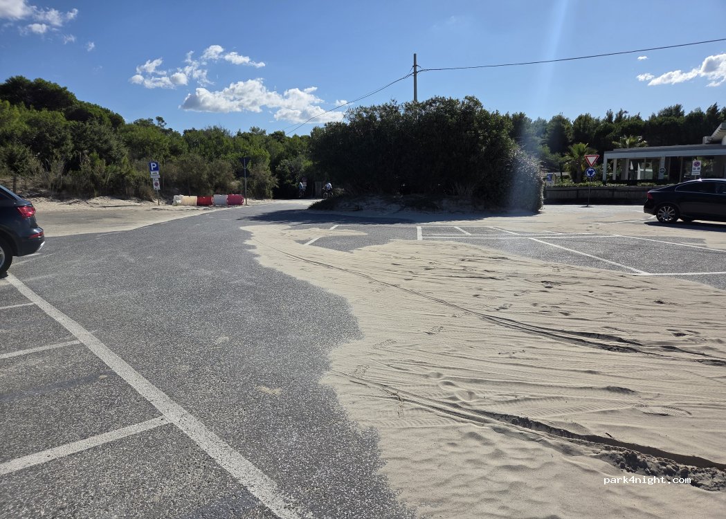 After season we could stay without problems next to the restaurant which was closed. No payment as parkmeters were already closed. Two other campers. Local dog beach so no problem with a dog. Loads of fine sand.