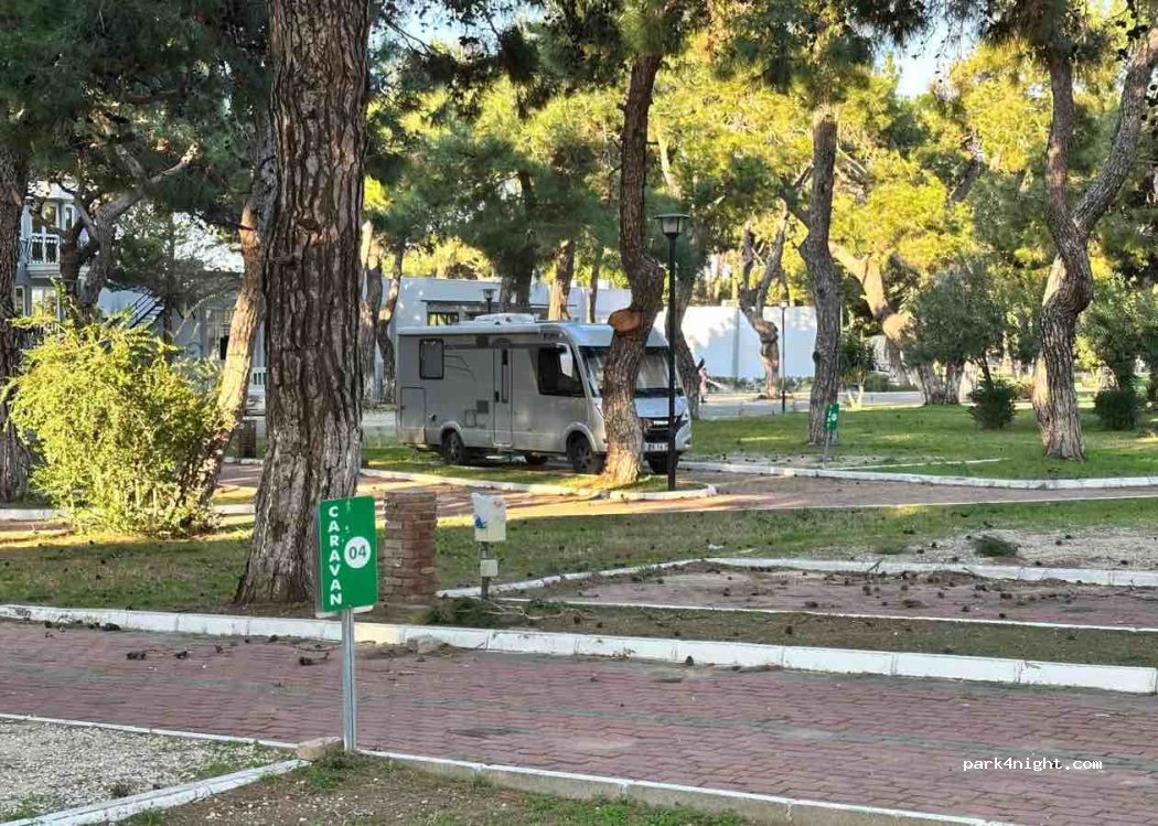 Excellente aire de camping car malheureusement avec un nombre très limité d'emplacements dédié aux camping car et caravanes. Sanitaires propres, cuisine avec frigo, salon, laverie à disposition (machine à laver gratuite). Eau et électricité à chaque emplacement. Plage attenante au complexe avec resto aux prix très abordables. Bus pour Side à 100m. 15 EUR/nuit. Je recommande.