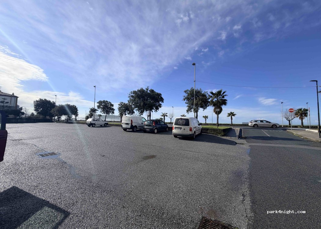 ottimo parcheggio, fronte mare e alla spiaggia sia con stabilimenti che libera. parcheggio pianeggiante, sempre ventilato. centro di Praia a 1 minuto a piedi con una bellissima passeggiata, parco giochi per bambini, e tanti posti per mangiare. anche un piccolo Conad a metà di essa. la notte è tranquillo e si dorme bene.