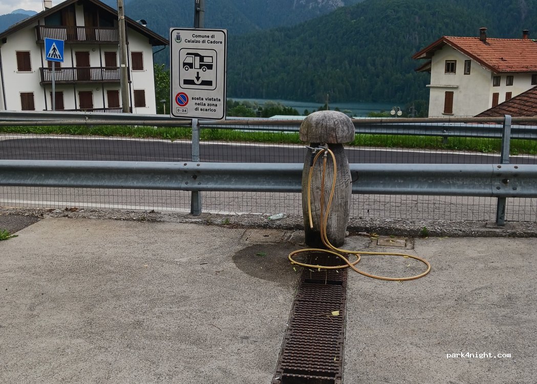 È una buona area sosta con vista sul Lago di Cadore vicino alla ciclovia per Venezia (150km). Peccato che qualche maleducato butti a terra i ticket dopo aver pagato. Ne ho raccolti ben 6.