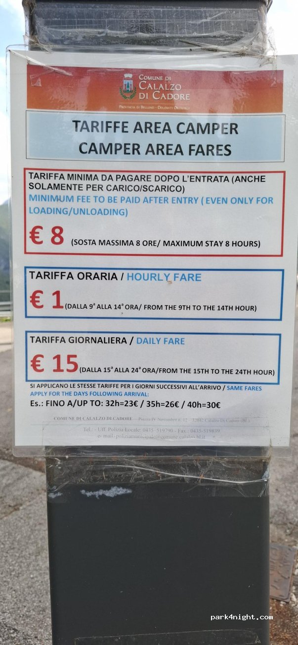 Comoda vista la vicinanza a stazione fs e bus per Cortina e Auronzo, ma comunque tranquilla per la notte. Praticamente sulla ciclabile E1 per Cortina. Ora 20/7/22 gratuita in quanto in rifacimento il meccanismo di accesso automatico, quindi senza corrente, solo carico/scarico.