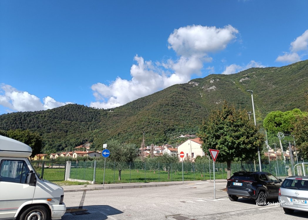 Large car park adjacent to the center of the village of Pove. Very quiet village almost dead in the water house near the parking lot. To use it you need a card that can be purchased from the tobacconist in the square. You can easily spend a night and even a very peaceful day