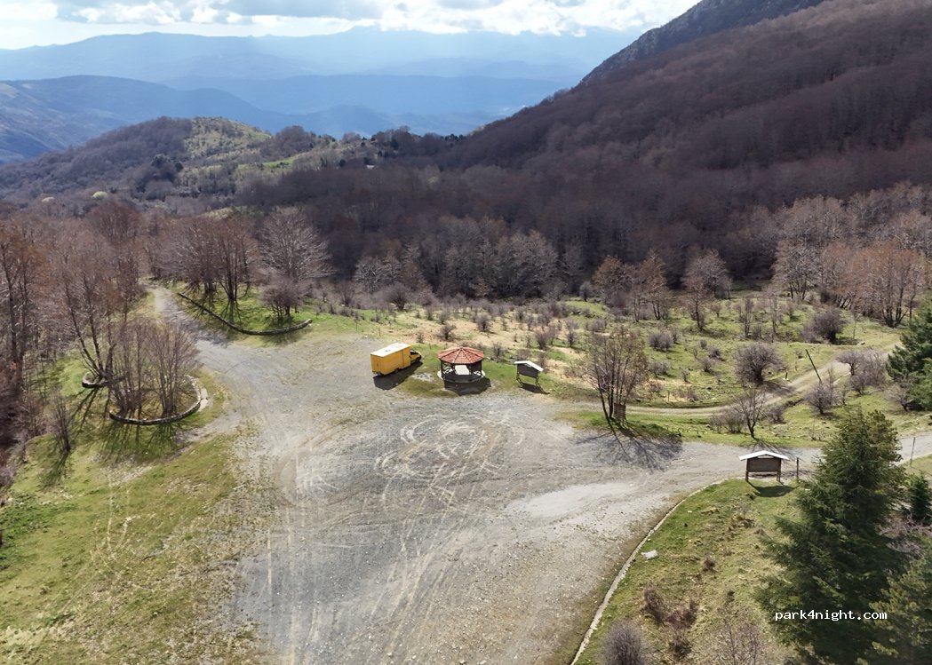 Huge parking lot, which is also suitable for the largest motorhomes. The place is quiet, surrounded by forest and offers beautiful views. There are garbage cans, but no other installations. Nearby is the Refugio del Bosco Favino with tables and benches in the forest for a picnic. The car park is suitable as a starting point for hikes, e.g. climbing Monte Alpi.
