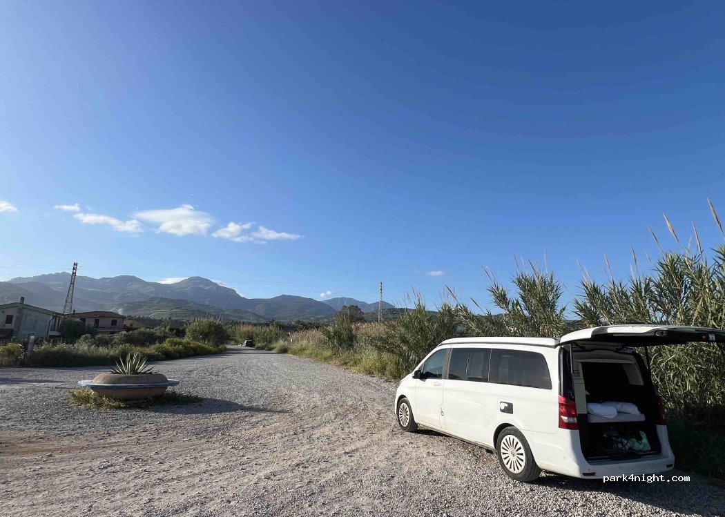 Bel endroit, calme en cette période. L'été je pense que ce n'est pas possible d'y rester la nuit. La police est passée sans aucun problème ni commentaires car très peu de touristes à cette période. Un point d'accès à l'eau est à 1,5km, très pratique, ainsi que deux supermarchés. Cefalu est à 20 minutes.