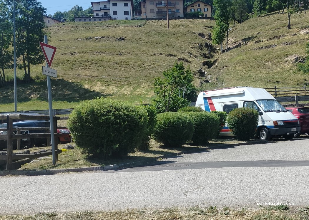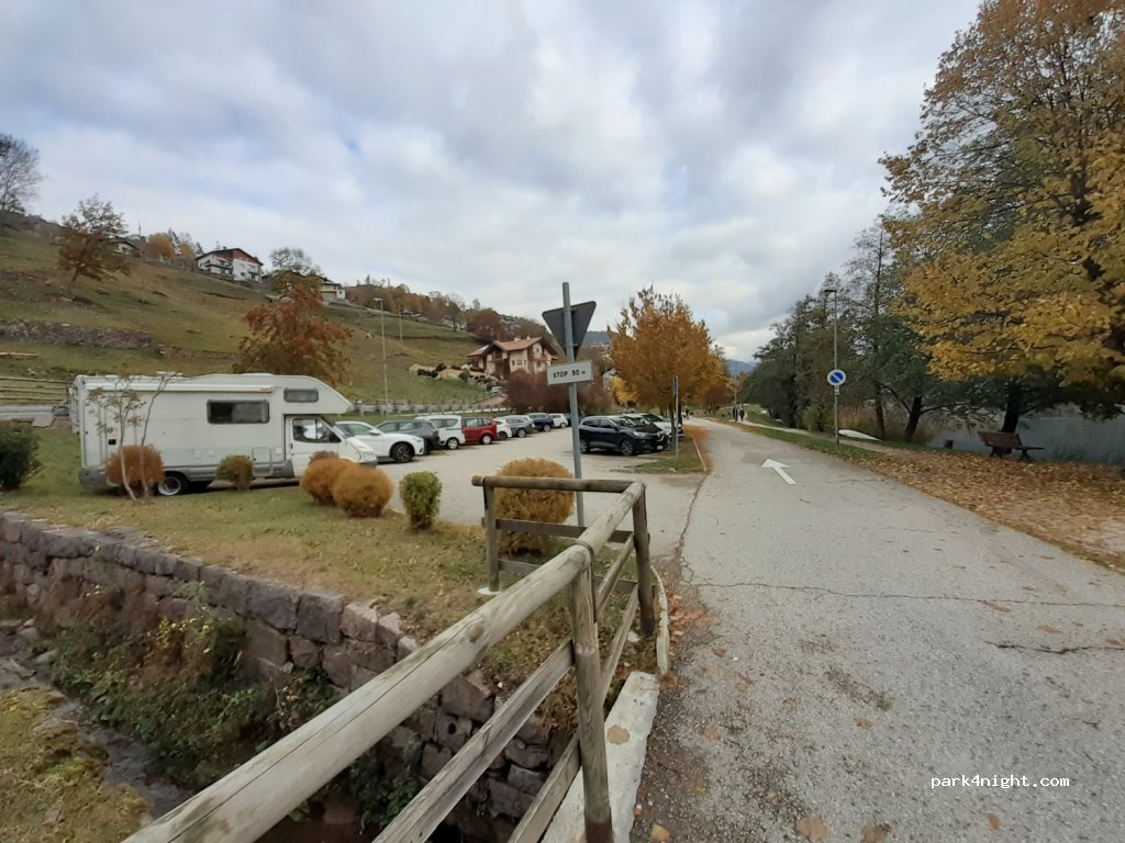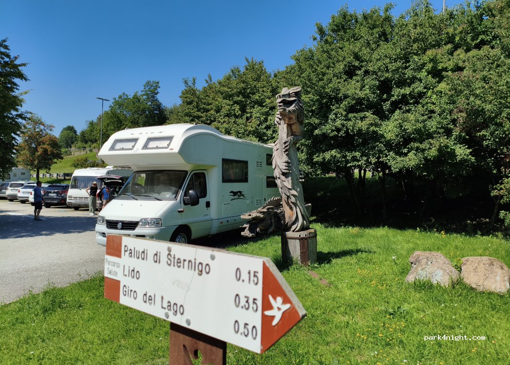 Parcheggio per ora gratuito accanto la strada.se si vuole dormire la notte è fattibile però c'è la strada accanto.però non è tanto trafficata.ottimo punto di partenza per fare il giro del lago è un anello che si fa in un ora circa per4km.ottima vista sul lago.la consiglio