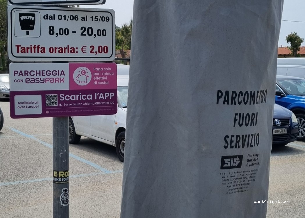 Parcheggio di cemento a pagamento con strisce blu. È proprio un parcheggio da città! Quindi ok per furgoni ma difficile per camper e impossibile per tende da tetto. Aspetto positivo, è a 50 metri dalla spiaggia! Nell’area ci sono antri parcheggi sterrati un po’ più adatti ma non segnalati dall’app. Alla fine ci siamo messi nel campeggio li vicino!