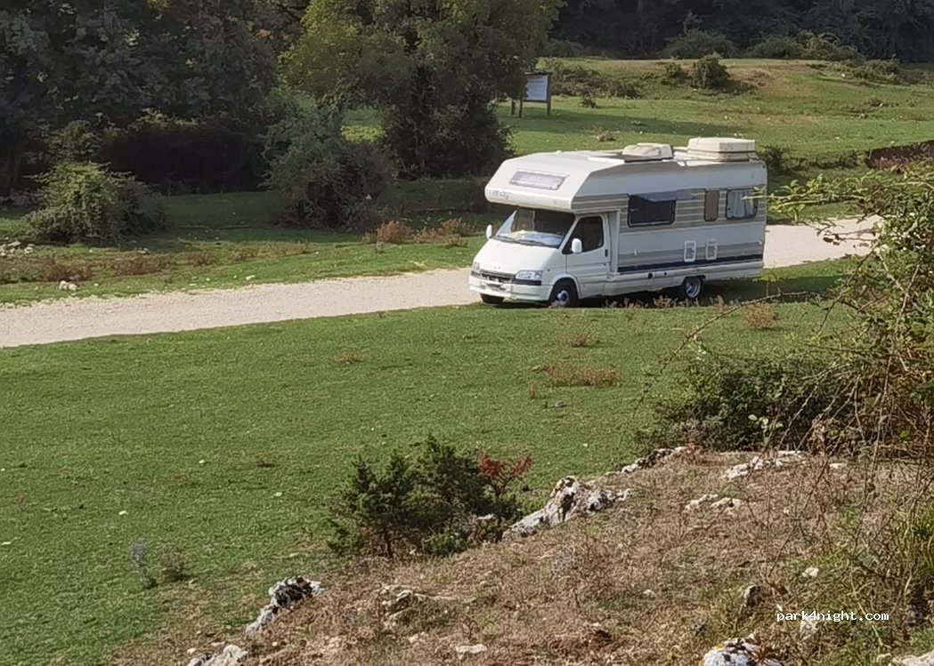 Posto assolutamente super! Pieno di animali liberi, tavoli e bbq disponibili! Passeggiate piacevoli da fare nei dintorni! Notte super tranquilla, buio totale e silenzio assordante interrotto solo da qualche campanaccio o verso di animale! Ci dicono che d'estate ci siano molte pulci, ma per l'autunno è da non perdere! La strada è sterrata ma recentemente sistemata quindi OK con mansardato 6,5 mt!