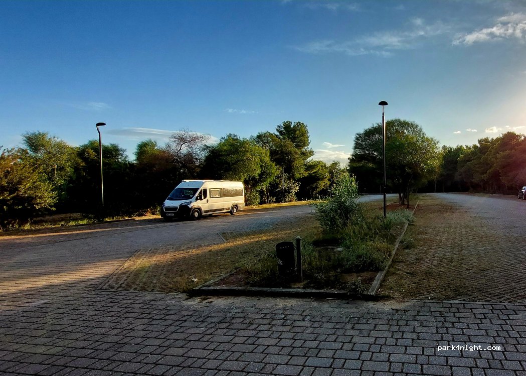 Ein prima Platz für autarke Wohnmobile. Direkt an Promenade und Strand. Völlig ruhig gelegen. Teilweise Schatten. Ab und an kommen Spaziergänger vorbei. Am Ende der Promenade sind Strand und Brachland ideal für Hunde. Die Strandduschen sind auch jetzt Ende Oktober noch in Funktion. Die Zufahrt und der gepflasterte Platz sind groß genug für Motorhomes. Mülltonnen an der Promenade.