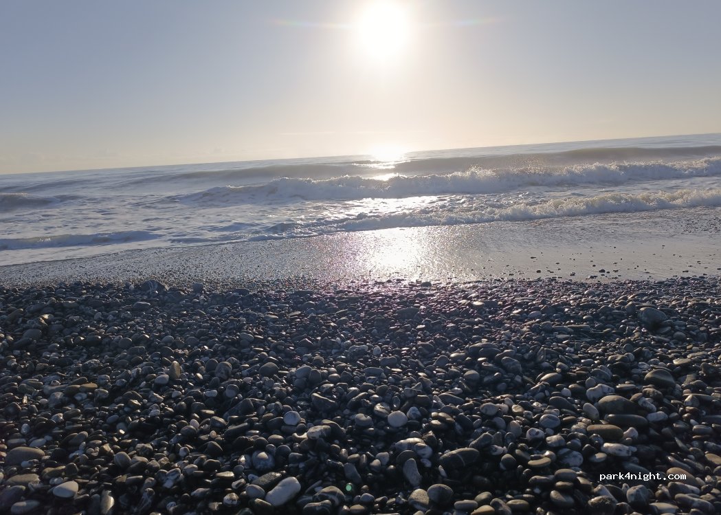 Parking lot. no prohibition signs. busy during the summer. quiet in winter. toilets and shower open in summer season.