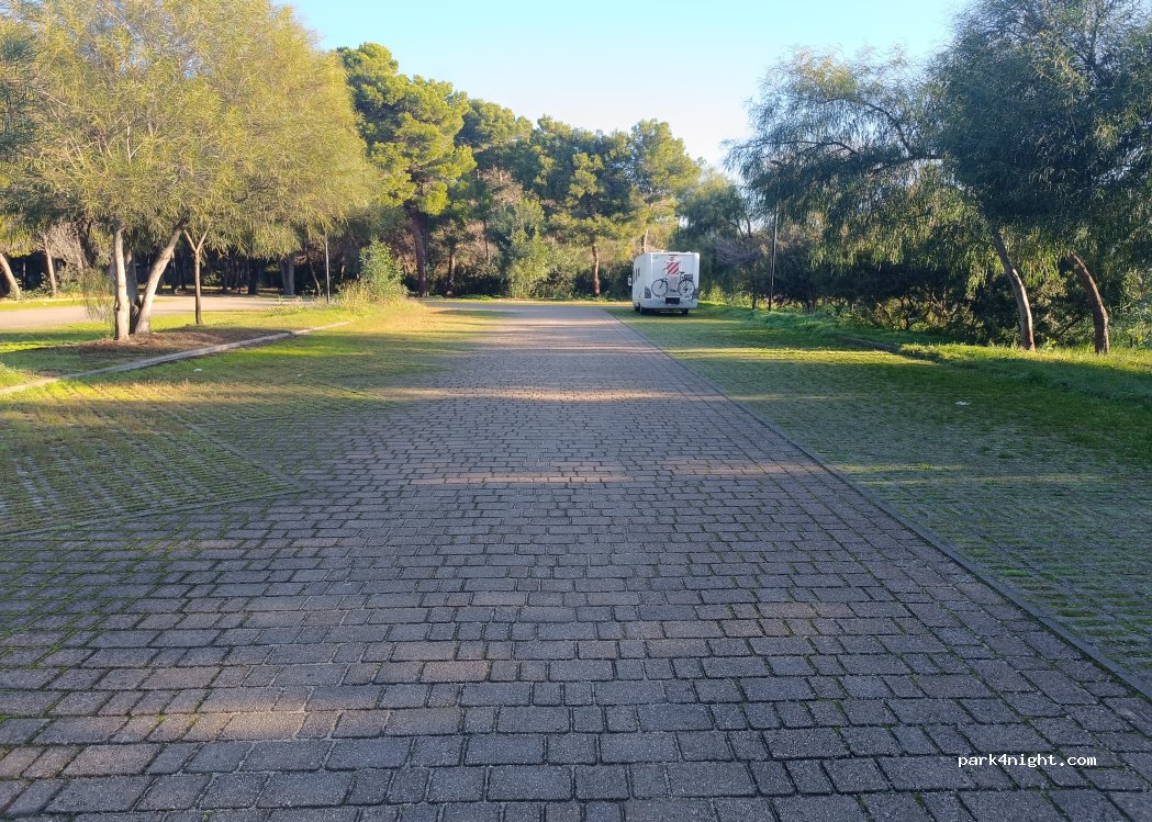 Estacionamiento. no hay señales de prohibición. ocupado durante el verano. tranquilo en invierno. Aseos y ducha abiertos en verano.
