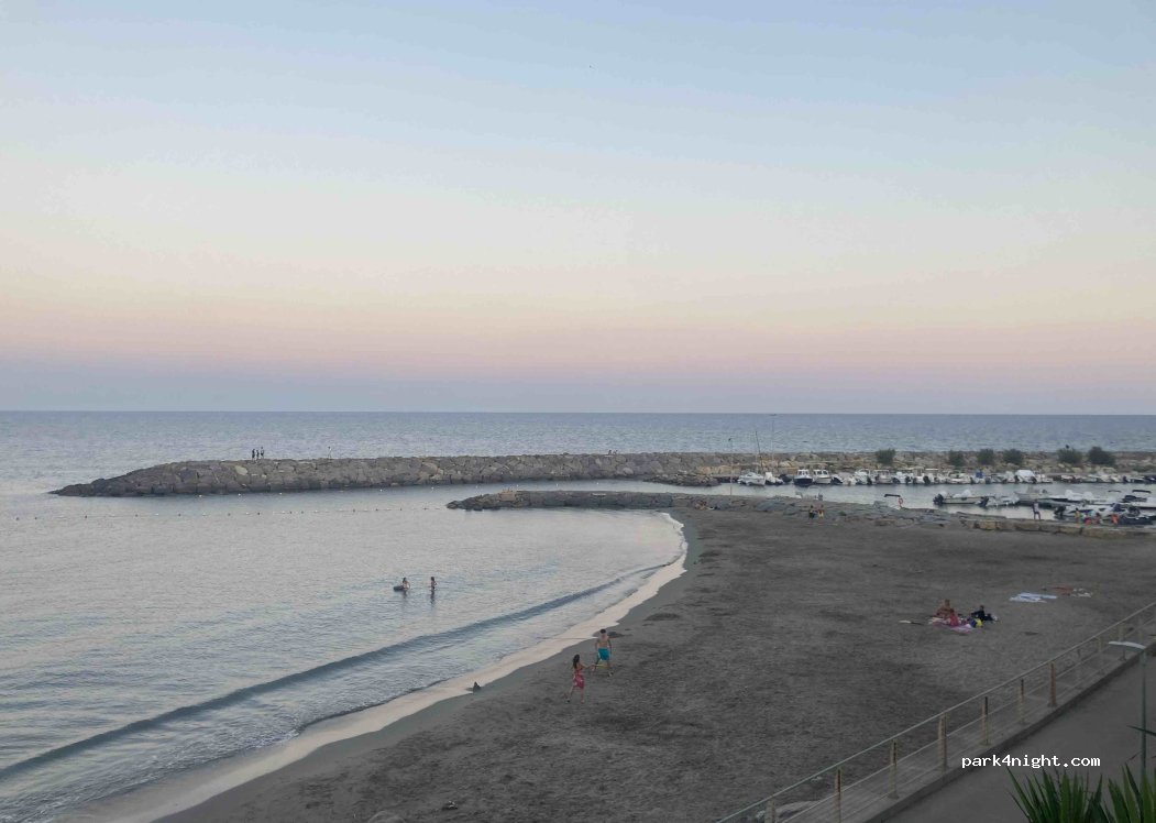 Sehr guter Parkplatz wie zuvor im Kommentar beschrieben. Super schöne Aussicht zum Sonnenaufgang. Mit der EasyPark-App kann man super genau die reine Parkzeit bearbeiten und bezahlen. Wir haben von 17:30 bis zum nächsten Mittag 12 Uhr 6,90€. Die Pizzaria A Livella (gegenüber) sehr zu empfehlen. Duschen am Strand vorhanden. Keine Öffentlichen Toiletten.