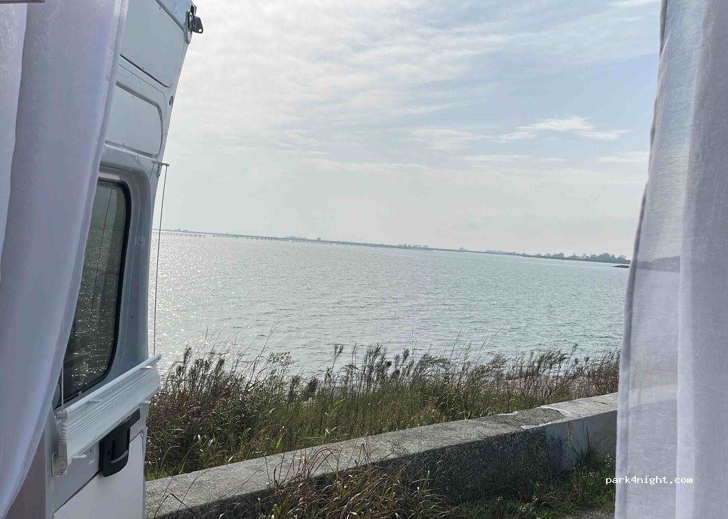 Posto per una notte molto silenzioso e isolato (c'è solo la provinciale l, poi campi da un lato e laguna dall'altro). È uno slargo della strada bello grande. non ci sono servizi. a 5 Min a piedi c'è un ristorante che fa da bar,a apre alle 10 (per chi vuole un caffè non in camper) In riva alla Sacca.no inquinamento luminoso quindi ottimo per le stellate. (potreste trovare qualche fotografo).