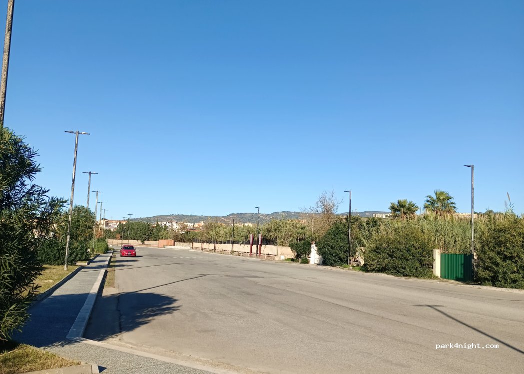 Parking between the road and the beach with a direct view of Sicily. Flat, lighted and quiet, a little dirty, but nothing extreme.
