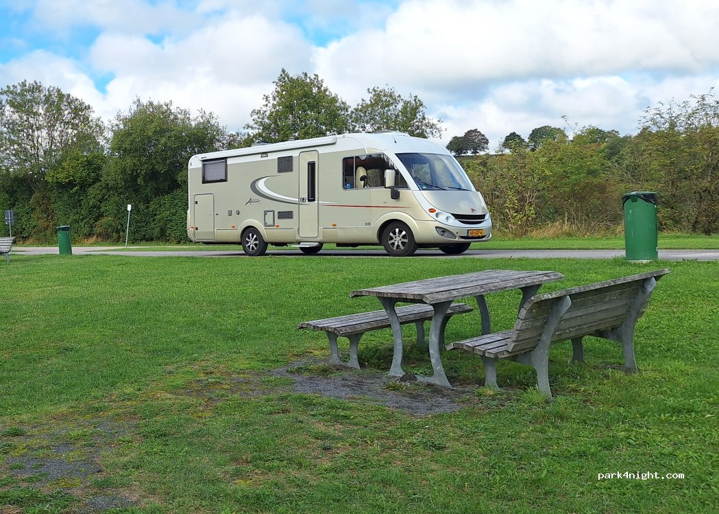 Rustig parkeren voor één nacht. De plaats is redelijk uniform en geplaveid. Er zijn picknickbanken.