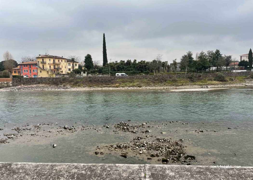 Stop bij de rivier, rustig, met een prachtig uitzicht over het dorp Pescantina. Vriendelijke bewoners.