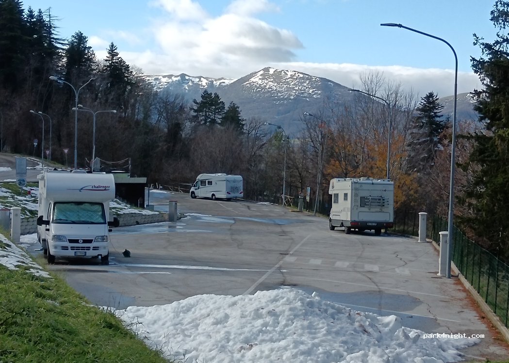 Vicino al centro di Camerino. Ottimo esempio di area camper pubblica gratuita. Corrente 1 euro per 4 ore.