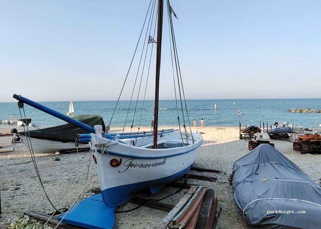Porto Recanati. Zona comunitaria de la nueva gestión. Mar a 100 m. Sobre la hierba. Poca sombra. Centro portuario de Recanati junto al carril bici a 600 m.