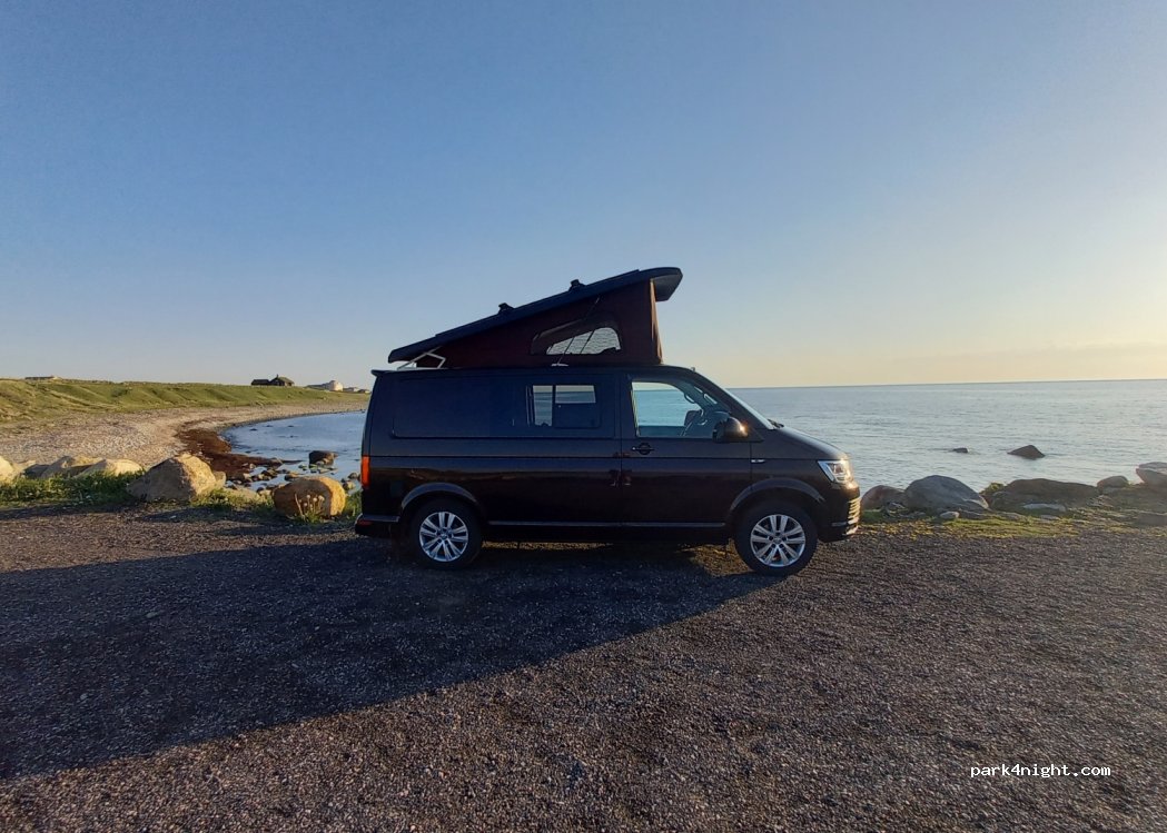 Beautiful park-up, quiet and suitable for vans and MoHos of all sizes (we’re 9.5m long and 3.85m high). Sunrise and sunset both glorious from here. Payment in cash or VIPP. If you’re not Norwegian, then you’ll need cash as VIPP can only be accessed with a Norwegian phone number and identity number. The beach is lovely, but beware there are cows that roam there too - so dogs on leads.