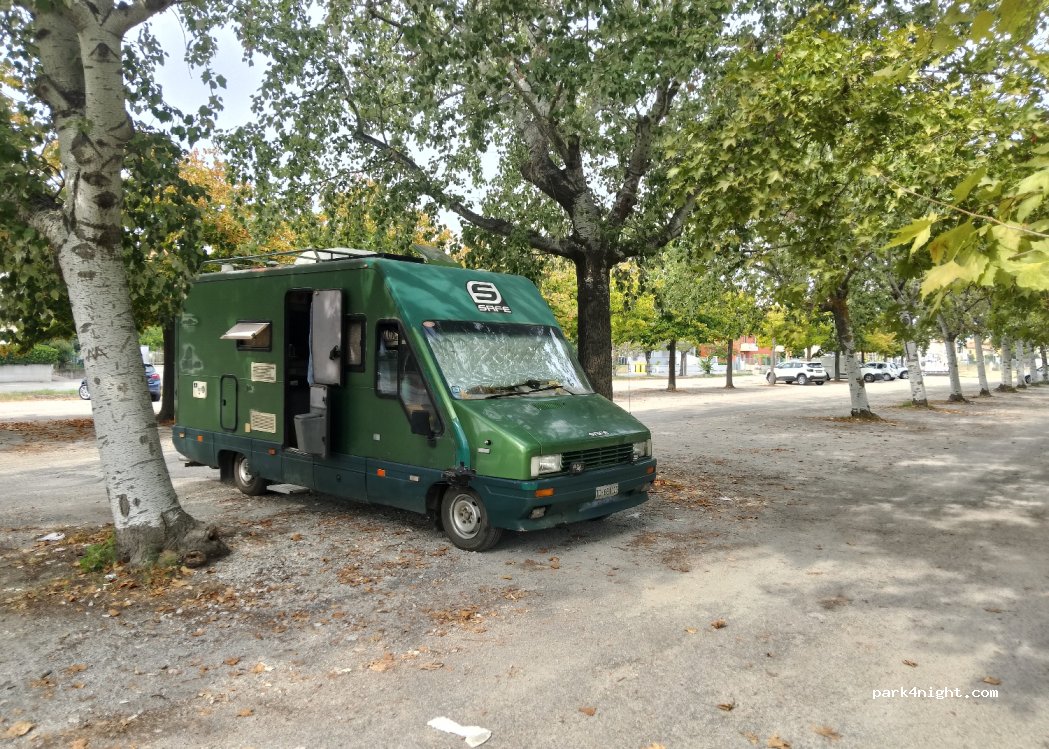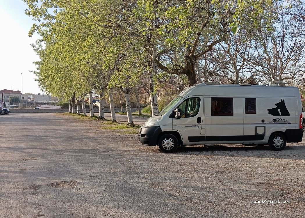 parcheggio gratuito non movimentato ma molto rumoroso a causa di un treno che passa anche nelle ore notturne. siamo rimasti solo perche c'è molta ombra