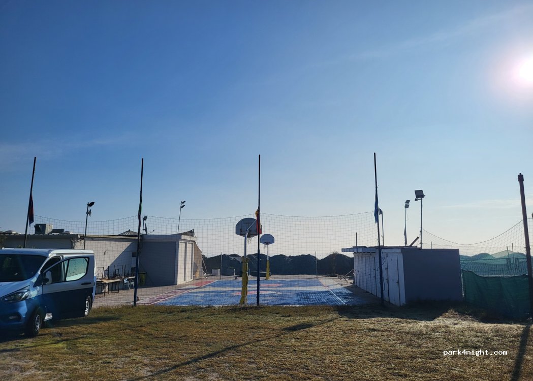 Im November menschenleer und sehr ruhig. Viele zutrauliche Rehe am Stellplatz. Wir standen direkt am Basketballplatz des Bagno Playground Beach. Sicht aufs Meer nur bedingt möglich, da der Strand aufgeschüttet war. Mülltonnen vorhanden, keine WCs. Auf jeden Fall empfehlenswert!