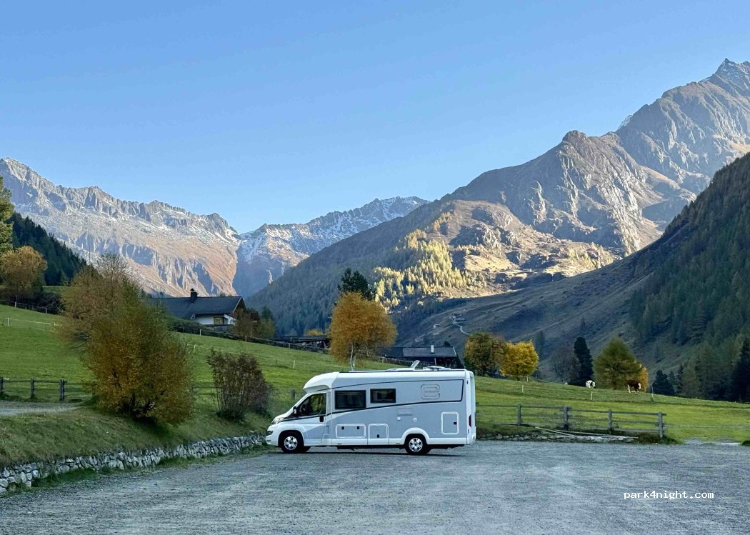 Der einzige legale Übernachtungsparkplatz im Talschluss. 35 EUR für 24 Std sind horrend teuer und der Beweis dafür, dass WoMos nicht erwünscht sind. Das Kriterium für diesen Preis: höher als 2,45 m, sehr seltsamer Luftraumverkauf. Und keine VE-Einrichtungen. Beste Lösung: in Sand in Taufers ist ein kostenloser Stellplatz, ins Tal hinein gibt eine sehr gute Busverbindung.