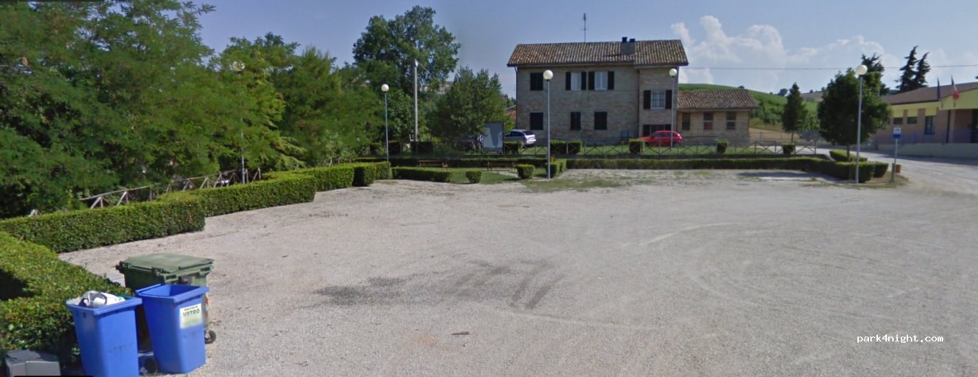 Free flat parking on pebbles, free loading and unloading, quiet area in illuminated greenery, picnic tables and trash cans, about 1km on foot to get to the historic center of Petritoli