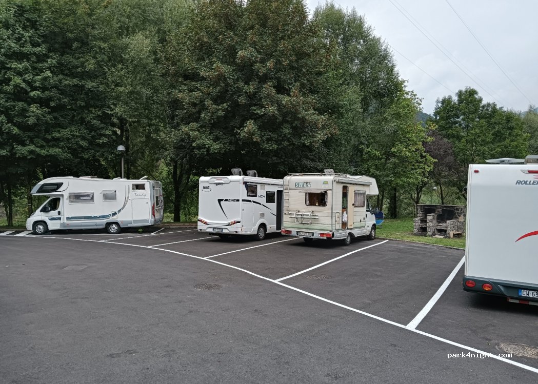 Near to the river where you can take a dip, green area with grass and trees, fountain of fresh and good drinkable water, it's also a pic nic area with wood tables ans 2 bbq slots made of stone. Very quite place so please don't be too loud at late hours. Pleasant temperature during the night in June.