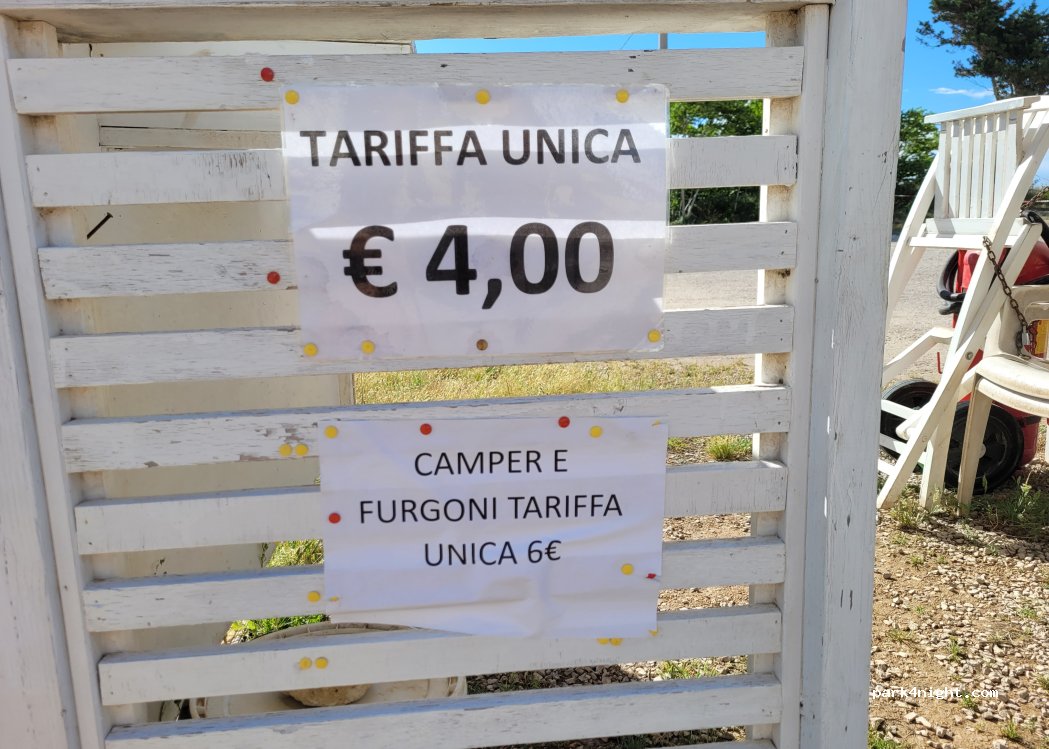 Costo per i camper di 8€. È l’unico parcheggio presente nella frazione!