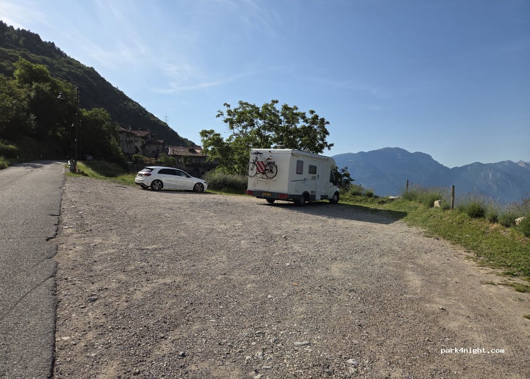 Roadside open space overlooking the lake shore and the village of Tenno. perfect parking for visiting the medieval village, free and without height limits!