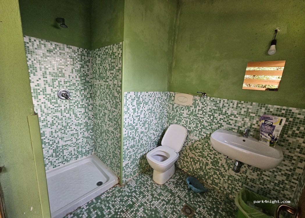 area sosta tranquilla nel verde , bagno anche se non molto pulito , ha doccia con acqua calda illimitata ! tutti servizi ( elettricità, scarico acqua nera più acqua potabile) tutto a 15€ . l'ho apprezzata per la tranquillità , il suono piacevole dell'acqua del ruscello e per le piazzole ben distinte tra loro che donano un minimo di privacy , consigliata !