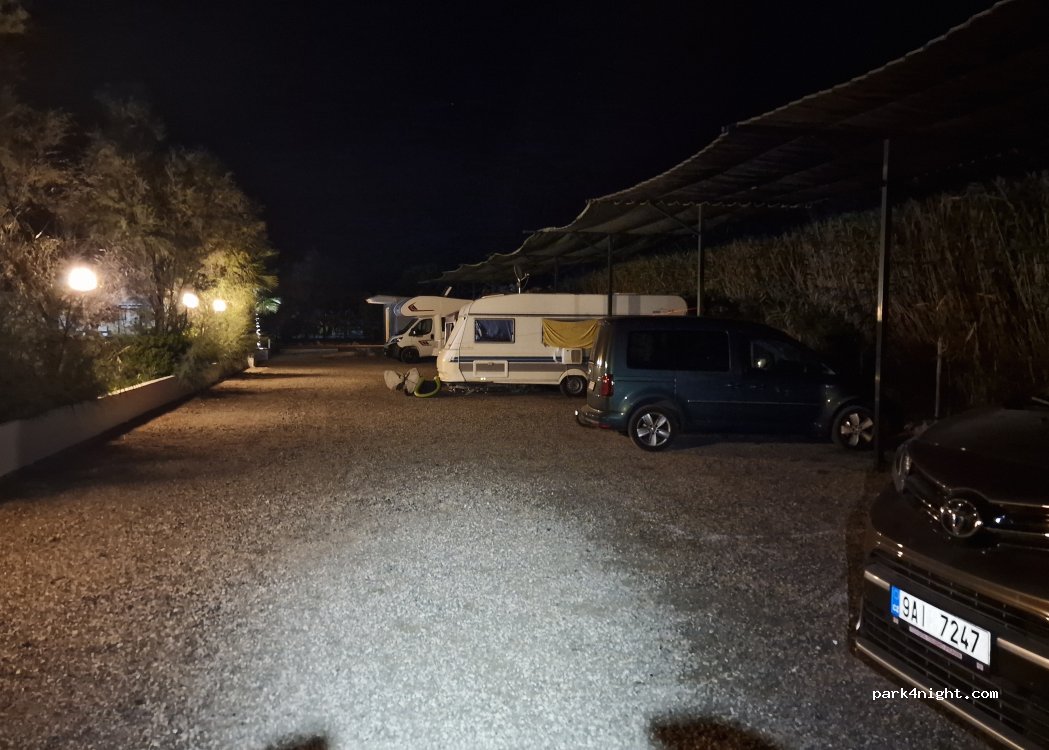 Location on gravel no tree but all places are covered restaurant on site very good sanitary block reserved for campers (supply of 2 keys to the arrivals) beach sand black beach service on site no shops on site plan to do his purchases before arriving very nice and hospitable owners the best of the city but the furthest but at least there is no music all night area name: Baywatch