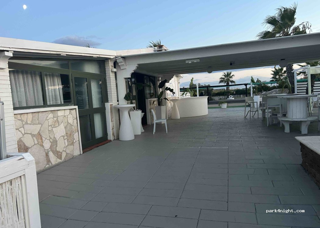 Lido Baywatch . Plage avec restaurant Privé avec une zone pour CC . Il y as les éléments principaux, wc ok bon faut pas trop regarder , les douches EC payantes 1€ , point de vidange , pas de remplissage car non potable, point de lavage pour la vaisselle . Bon malheureusement pour notre passage une session orageuse ?️ était de passage . Le propriétaire et le staff ( je pense que c’est pour tous de la famille ) plutôt agréable.