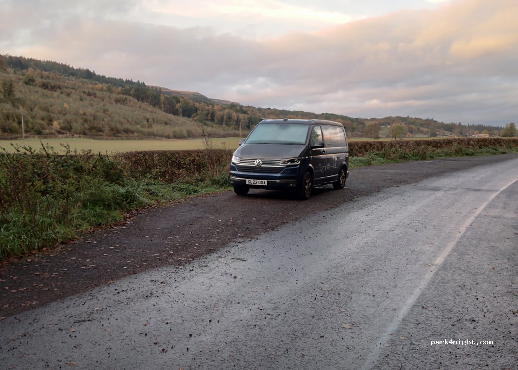 Stayed here late July 23. Very quiet. No facilities. The owl is still nearby. Close to Stirling castle and the Wallace monument. 4 other vans here. Plenty of room. No signage at all.