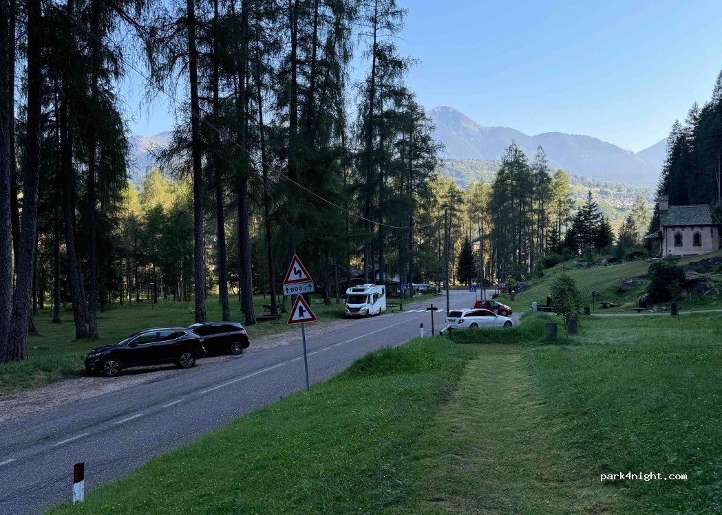 Parcheggio un po’ in pendenza ma immerso nel verde con vicino parco giochi,parco con tavoli e panchine, attrezzi x ginnastica , bagni e fontanella che con innaffiatoio si può rifornirsi, molto vicino all acropark. Noi abbiamo pernottato e nessun problema , verso mattina aumenta il passaggio di auto e moto ma la notte molto silenzioso . Consiglio molto molto soddisfatto
