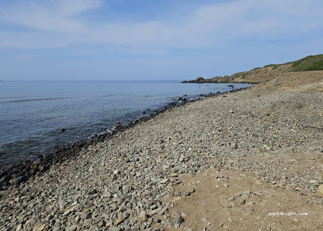 Parcheggio molto tranquillo con facile accesso al mare.Il mare è poco profondo i primi 50 metri. Spiaggia piuttosto rocciosa. Eravamo qui da soli.