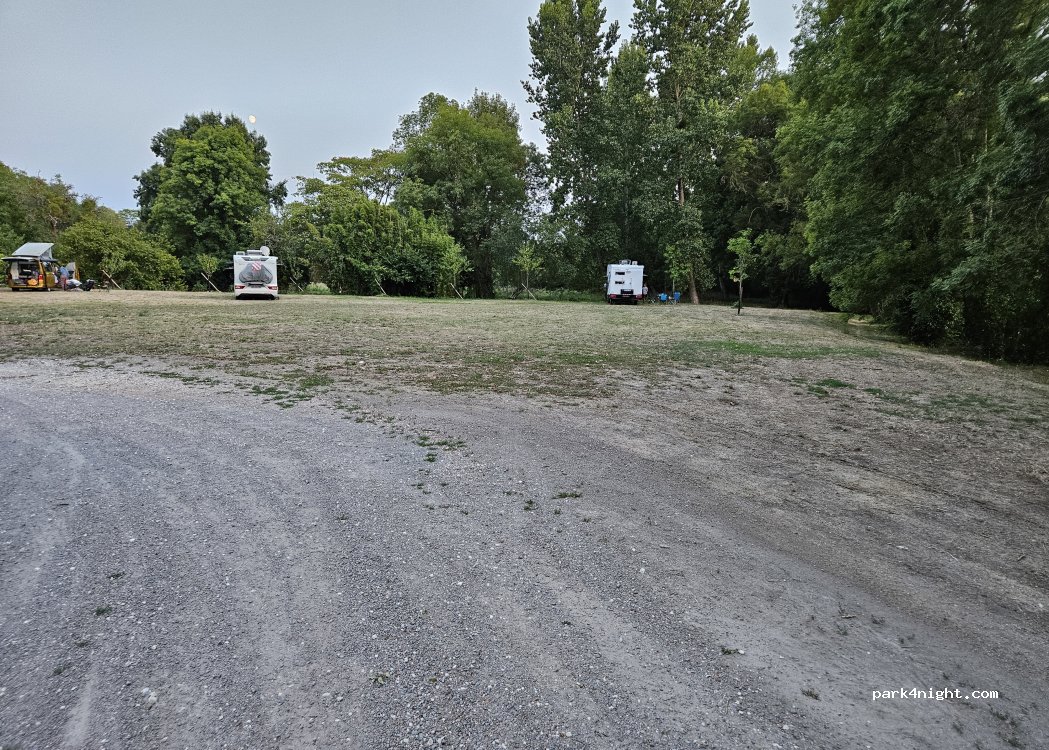 Un grand terrain arboré au centre-ville tres calme. restaurants à proximité. accès gratuit les toilettes sont propres. super pour passer la nuit sereinement.