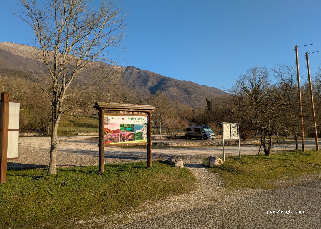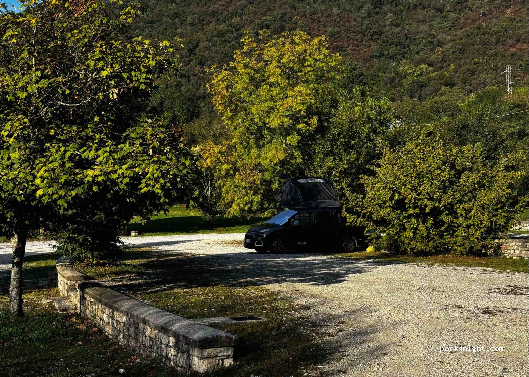 Fairly level gravel parking. Little shade. No lighting. Attached to the resurgences of the Livenza and its Park. Better to get there from the SP29 above. Quiet, peaceful, clean and green place: as always, to be respected in all its prerogatives. Reachable within 4 steps, a hospitable trattoria.